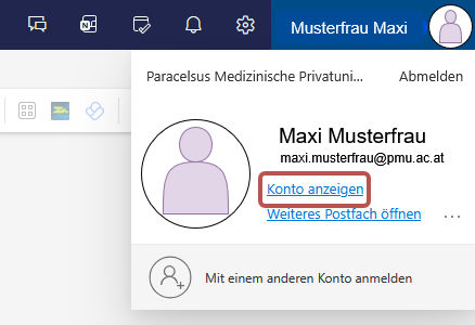 2. Melden Sie sich mit Ihren aktuellen Zugangsdaten an und klicken Sie anschließend rechts oben auf Ihr Profilbild. Wählen Sie dann "Konto anzeigen" aus.