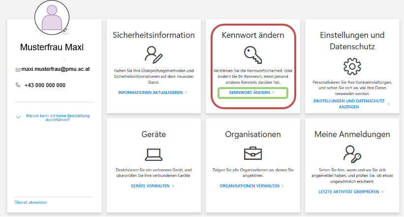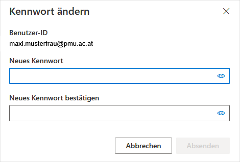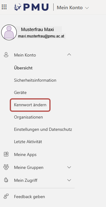 Bitte beachten Sie, dass Ihr PMU-Kennwort (aus Sicherheitsgründen) in regelmäßigen Abständen abläuft und dann über myaccount.microsoft.com aktualisiert werden muss, bevor es wieder in allen PMU-Systemen verwendet werden kann.
