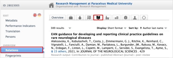 Now you can view and filter all research outputs of your organisational unit. Please note, that downloading the data from this window is not possible.