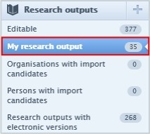 If you are a Researcher as well, you can check on your own records by selecting the My research output option: