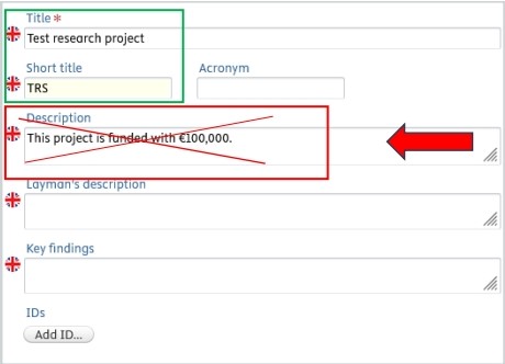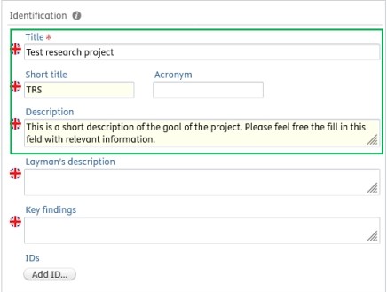 Optional data: In addition to the abovementioned information, please feel free to fill in the optional fields as well, such as the project description, keywords, or links to related research outputs.