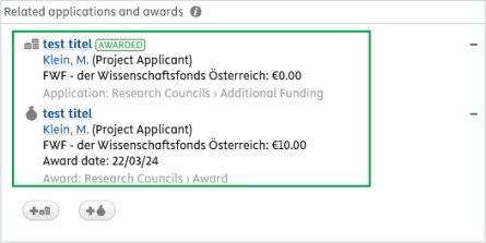 Budget information is generally never displayed in the PURE Portal or on the PMU website, only information on the project participants, the duration, the related internal and external organizational unit(s), labels (so-called fingerprints) generated based on the underlying awards/grants, and a link to the project website.