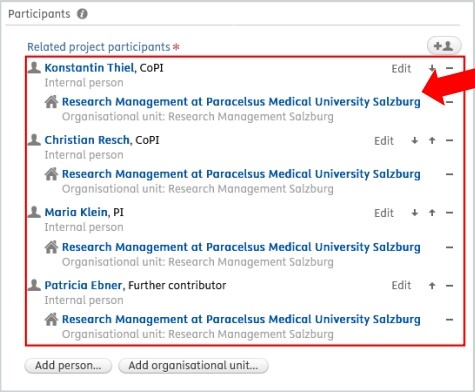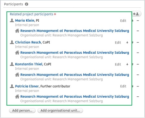 ü Managing organisational unit: Order: PI > Co-PI > other contributors