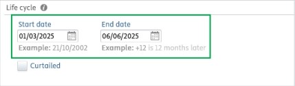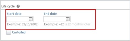 ! none of the lifecycle fields are filled in – please make sure to enter at least the start date. If the end date is not yet known, please provide an estimated end date:
