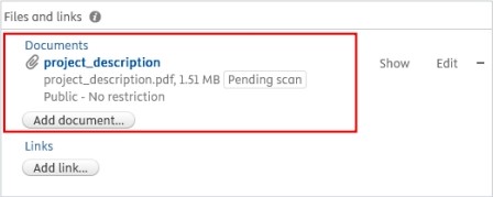 ! a project document (PDF, Word, etc.) has been uploaded → please remove it immediately by clicking on the minus: