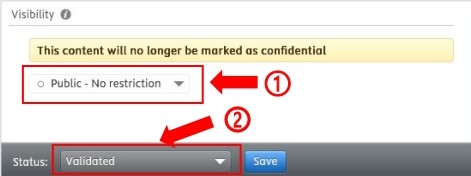 This role allows you to set the workflow status of projects to ‘Validated’. Projects labelled as ‘Public’ ① (please note: visibility must be actively set to ‘Public’) AND validated ② will appear immediately in the PURE portal and on the PMU website the following day.