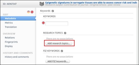2.6. Assignment of Research Topics to a Publication – NEW!