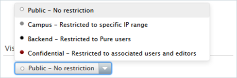 Visibility controls the internal and the external access of the records in Pure. You can control the visibility of your records by setting the visibility state from the dropdown list.