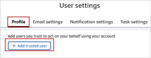 - Select Profile and navigate to Trusted Users. Then click on the Add trusted user button. Begin searching for the name of the trusted user you wish to add. You can add multiple trusted users.