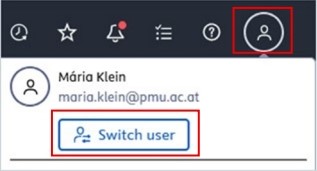 A trusted user can switch between their own profile and the profile of the user who added them as a trusted user by clicking on the Switch user button: